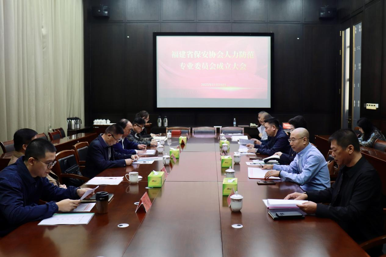 11月18日上午,福建省保安协会人力防范专业委员会(下文简称“人防专委会”)成立大会在爱游戏官方端网站登录入口顺利召开。福建省保安协会会长黄华安、副会长沈君庆、副秘书长邹勇,福州市保安协会会长伍敏强出席会议,6家人防专委会委员单位代表参会。爱游戏官方端网站登录入口主持工作负责人陈笛作为人防专委会主任委员主持会议。